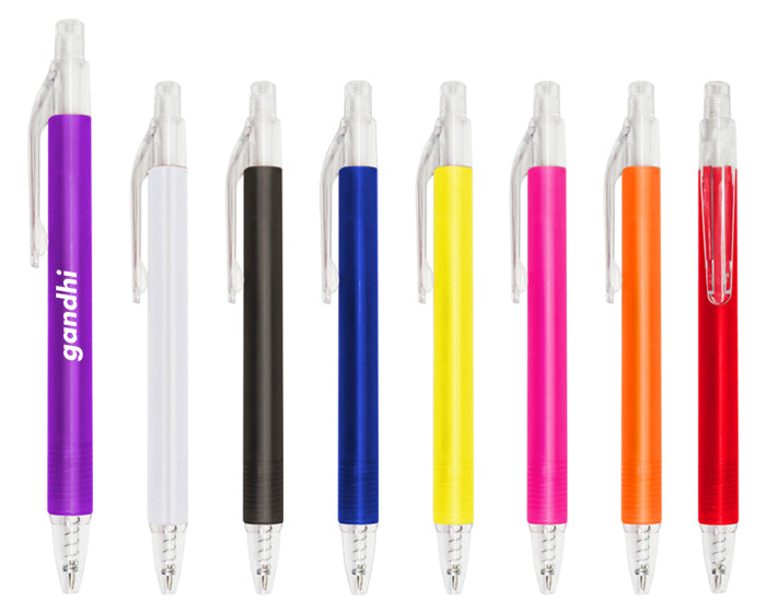 100 piezas | Bolígrafo de plástico traslúcido. Mecanismo de click, con logo impreso