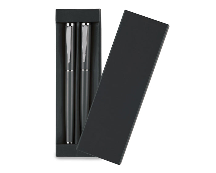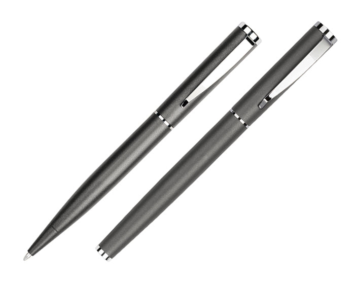 3 sets | Set de bolígrafos metálicos de tinta negra, con logo impreso.
