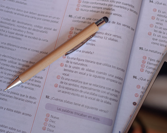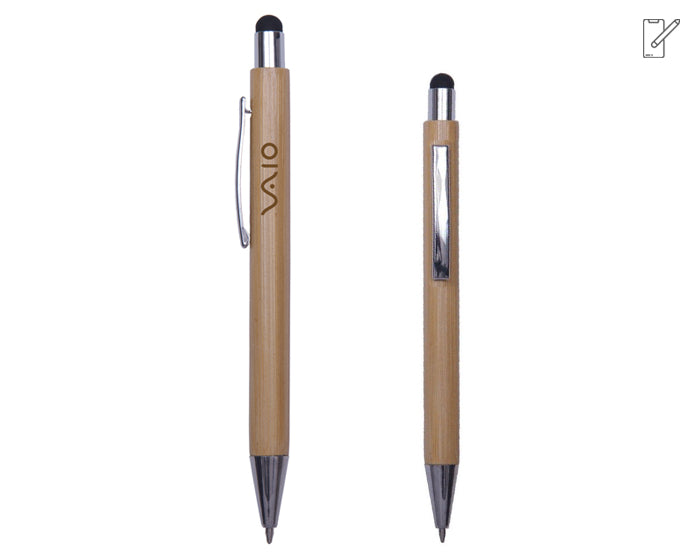 50 piezas | Bolígrafo de bambú, clip y punta metálico. Con punta touch, con logo impreso
