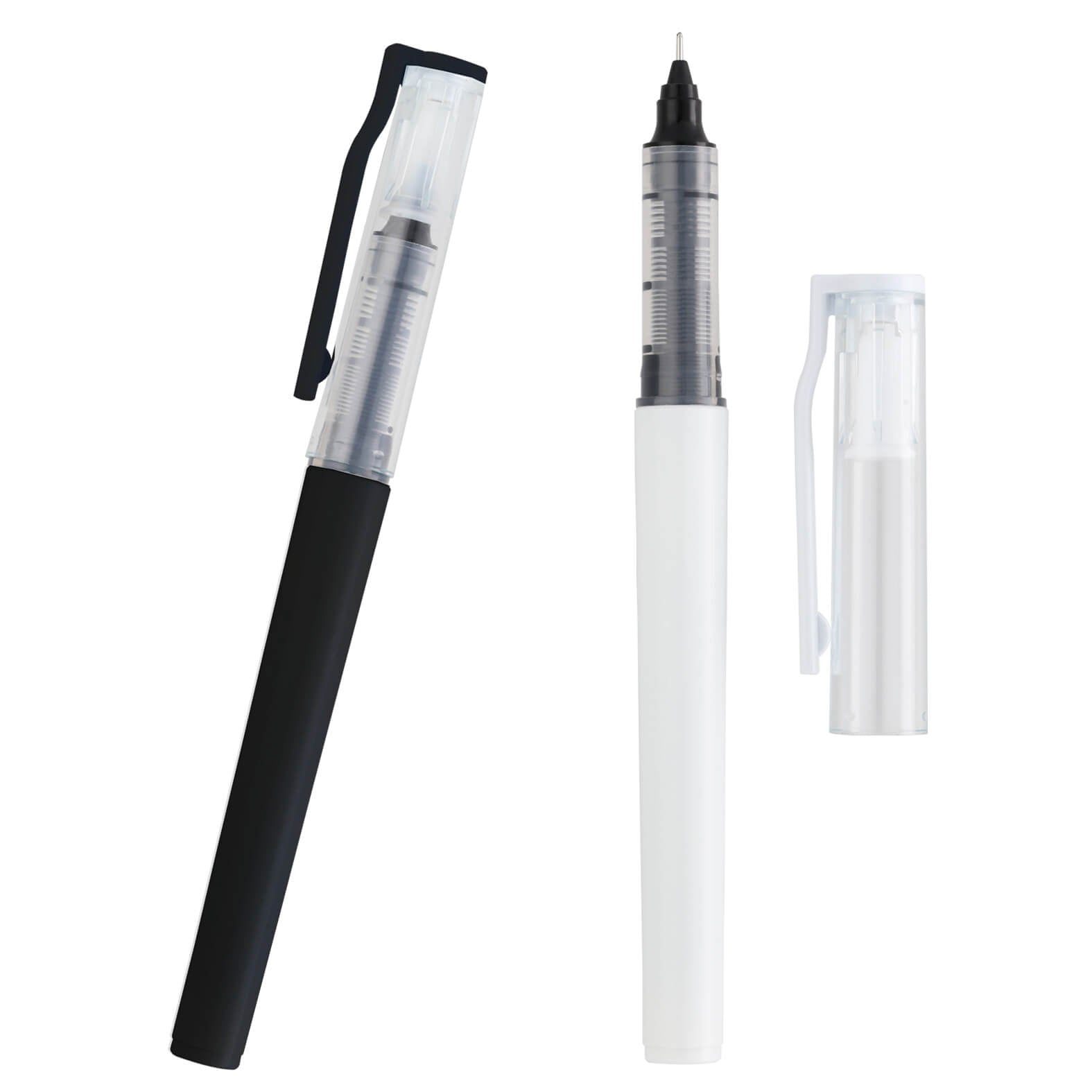50 piezas | Bolígrafo de plástico con tinta negra de gel, tapa traslúcida y clip de plástico, con logo impreso.